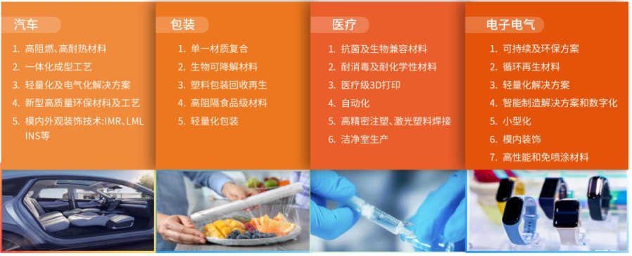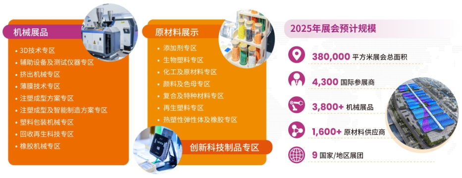 CHINAPLAS 2025 国际橡塑展始终紧密关注终端企业与买家的核心需求,致力于融合多行业的橡塑技术解决方案,如汽车、医疗、包装、电子电气、新能源、建材、航空航天、纺织、运动休闲等众多领域。